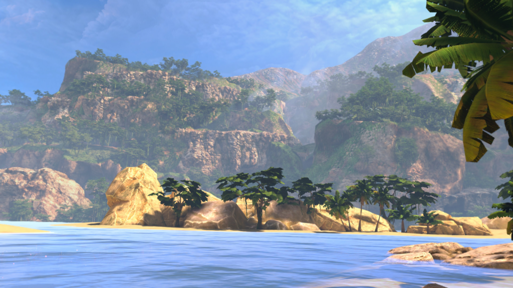 No nie, jeśli liczyliście na pełną przygód morską podróż, to niestety muszę was zmartwić – w tej grze tego nie uświadczymy. Właściwa rozgrywka rozpoczyna się już na owej tajemniczej wyspie – jej plaża zaoferuje nam trochę początkowej swobody, zaznajomi nas z podstawowymi mechanikami gry (jak pływanie, wspinanie się czy zbieranie i używanie przedmiotów) oraz przedstawi naszego jedynego i nieodłącznego kompana – papugę Rango. Ptaszysko będzie naszym przewodnikiem po wyspie, czasem da nam cenne wskazówki podczas rozwiązywania zagadek oraz – przeważnie – będzie nam rzucać kąśliwe uwagi oraz drwić z nieporadności gracza (ale jeśli ktoś jest przesadnie wrażliwy na krytykę i suche żarty, to może wyłączyć jej komentarze w opcjach gry).